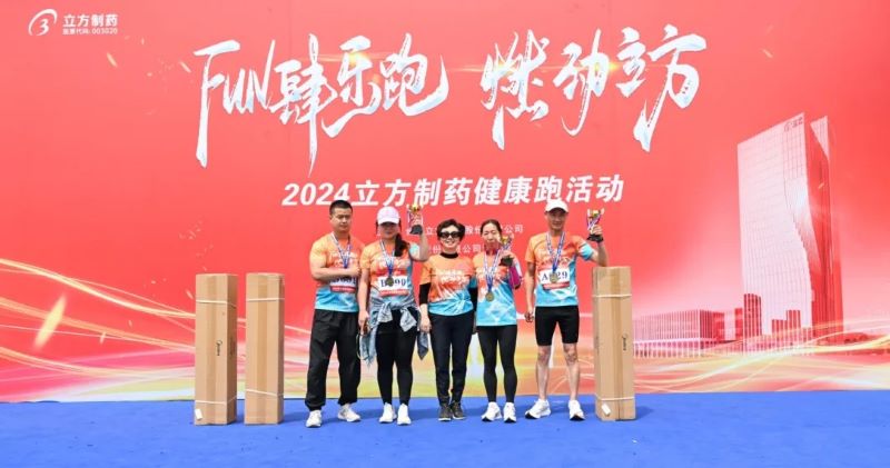 立方制藥副總經(jīng)理王清為男子競(jìng)速跑、女子競(jìng)速跑、雙人歡樂(lè)跑季軍頒獎(jiǎng)