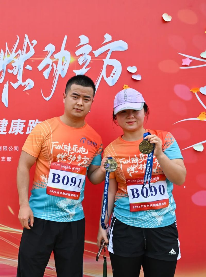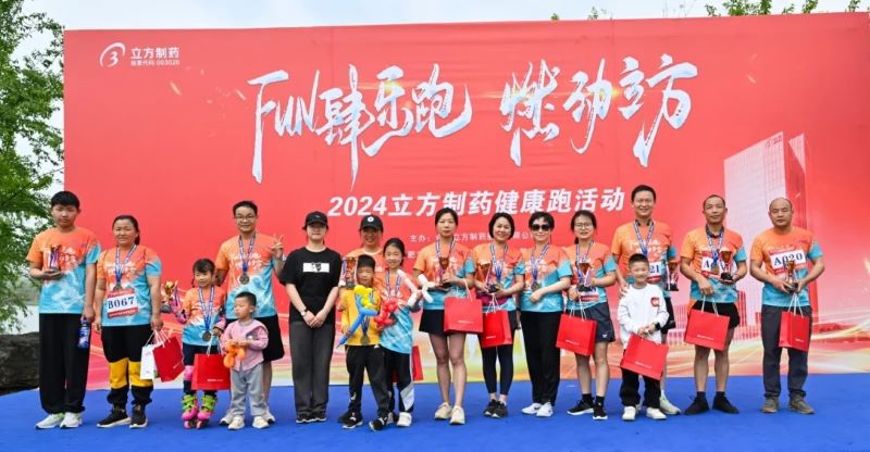 立方制藥總經(jīng)理崔歡喜為男子競(jìng)速跑、女子競(jìng)速跑、雙人歡樂(lè)跑亞軍頒獎(jiǎng)